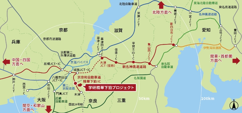 本プロジェクト地は「精華下狛IC」1分という交通至便の立地で、高速道路ネットワークを介し、