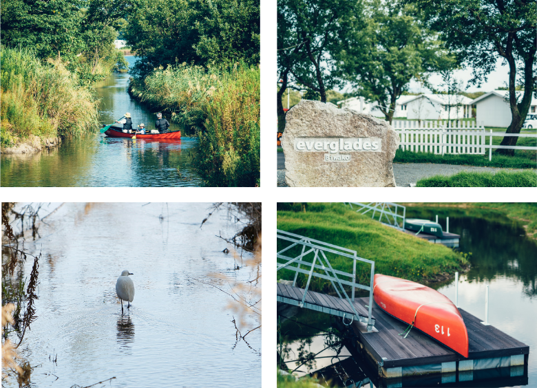 さらに、野鳥や水生生物の観察、湿地帯を抜けて内湖へと漕ぎ出すカヌー体験など、他にはないアウトドア体験が待っています。地域の子どもたちとともに自然観察プログラムを実践し、環境と調和したこの空間で、四季の移ろいとともに変化する自然環境を学ぶ機会を設けています。